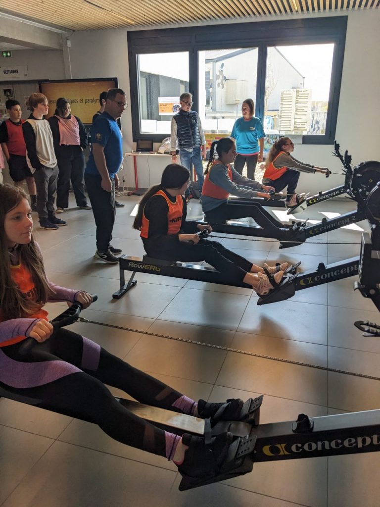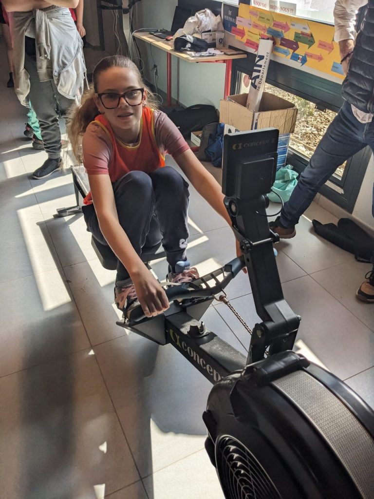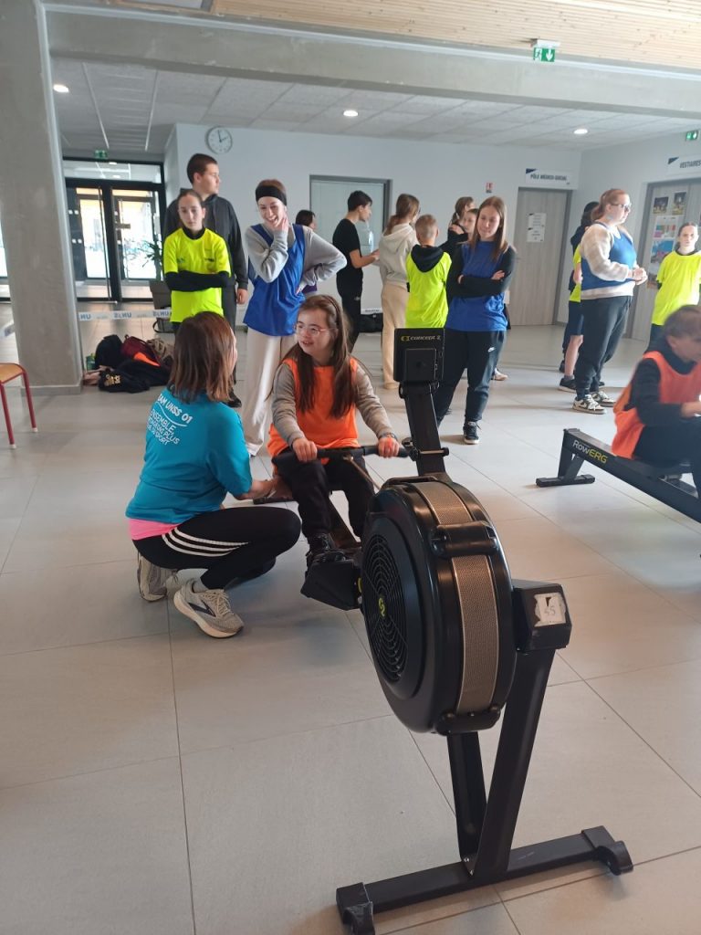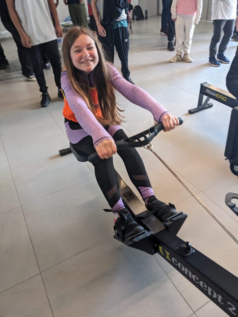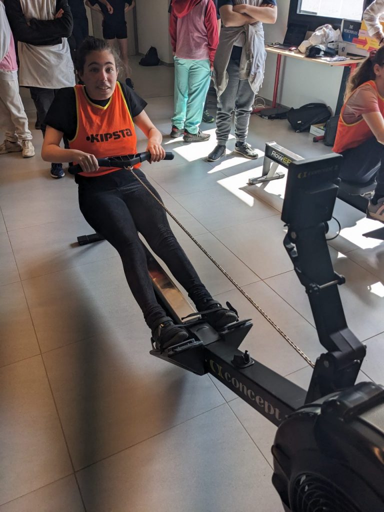 Certains élèves ont découvert le rameur pour la première fois, d’autres en avait déjà fait à la salle de sport. Nous avons fait un relais tous ensemble pour parcourir la plus grande distance possible en kilomètres.